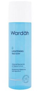 Kamu bisa melanjutkan pemakaian face toner setelah selesai menggunakan pembersih muka. Toner Wardah yang satu ini mengandung AHA yang mampu mengatasi pigmentasi yang menyembabkan kulit menjadi tampak hitam dan gelap, serta dapat merangsang regenerasi kulit.